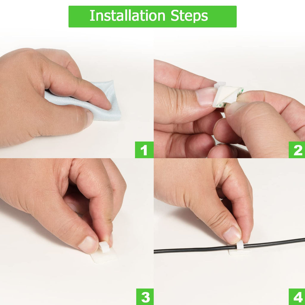 100PCS Cable Clips White, AIBOO Upgraded Wire Clips Adhesive with 50PCS Small Size & 50PCS Large Size Cable Straps, Mini Cable Wire Management for Handling Under Cabinet Lighting with Cords
