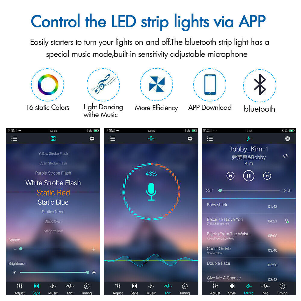 Also bluetooth led waterproof lights are waterproof, which means you can place it in outdoor or bathroom , never worry about water splash or bad weather like rain or snow, ideal for both indoor and outdoor decoration.