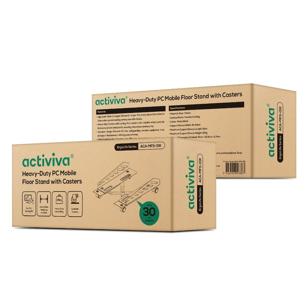 The activiva Heavy-Duty PC Mobile Floor Stand is a versatile solution designed to accommodate large PCs. Constructed from high-quality steel, it offers adjustable width and length, heavy-duty casters with locking mechanisms, and a guardrail design for added security. Its lifting chassis reduces dust and dampness accumulation, ensuring optimal performance and longevity for your PC setup.