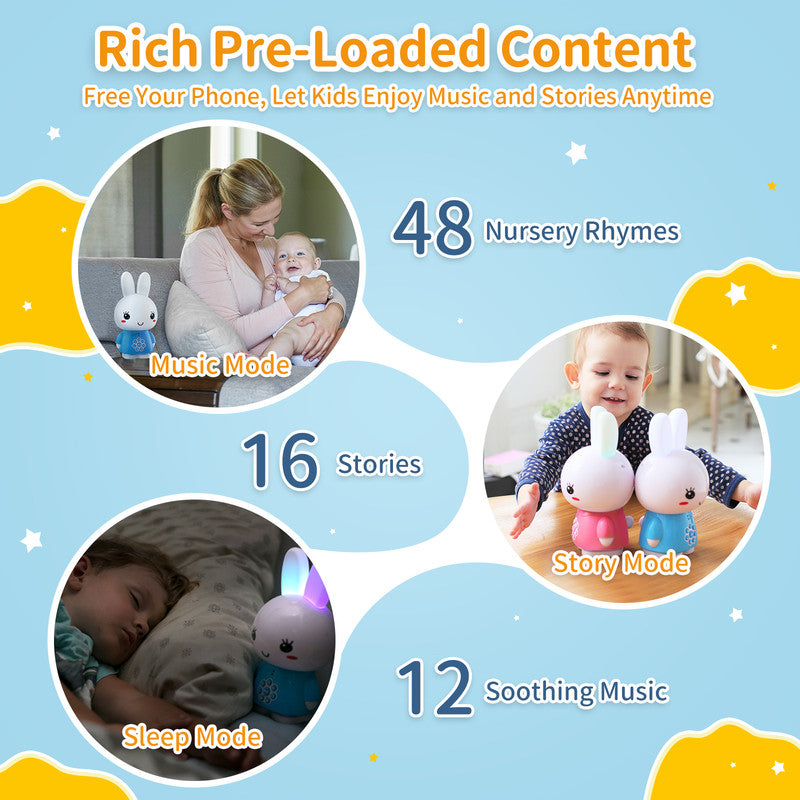 ✨【Screen-Free Audio Player】Baby musical toy pre-installed with 16 fun stories, 12 soothing lullabies, and 48 nursery rhymes, spreading joy and happiness to children. Non-irritating screen to protect your baby's eyesight. It promotes your baby's sensory development and hand-eye coordination.