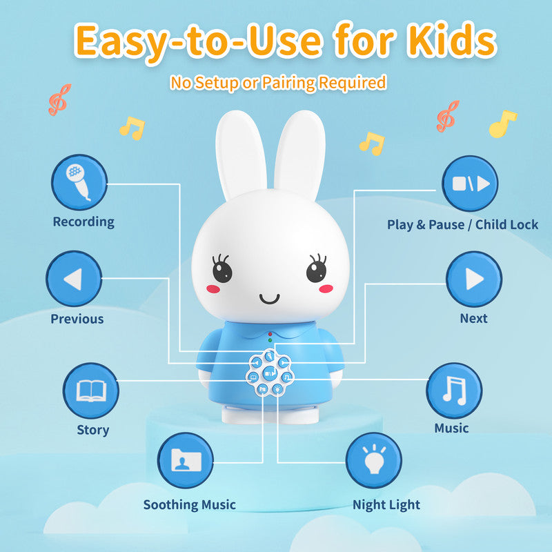✨【Chewable Silicone Rabbit Ears】The bunny is made of food-grade silicone with ears. Designed for babies to chew and bite during teething, providing relief from discomfort and bringing joy to children. Additionally, it holds FCC, CE, RoHS, and CPC certifications. Its ABS material and hidden screw design ensure it is safe, environmentally friendly, sturdy, durable, and resistant to falls.