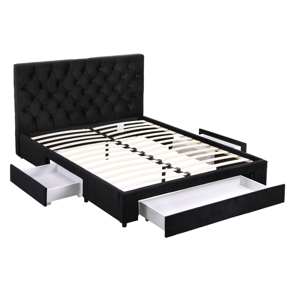DOUBLE UPHOLSTERED BED FRAME with Drawers+Charging Ports
