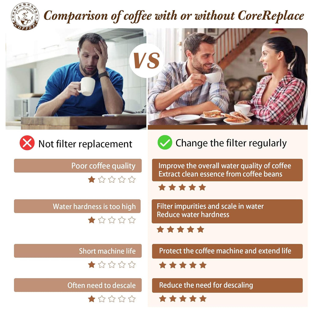 Descaling and Deodorizing: The filters effectively reduce mineral deposits that cause scaling, keeping your coffee machine running smoothly. They also eliminate odors, ensuring the freshest taste with every brew.