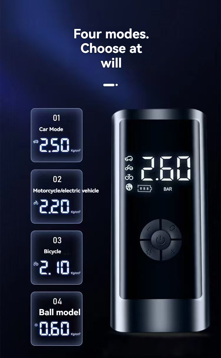 Multi-function: pre-set 5 modes (car / motorcycle / bicycle / ball / custom), intelligent recognition of the required pressure. It can not only inflate tires, but also inflate footballs, basketballs, swimming rings, etc., which is very practical.
