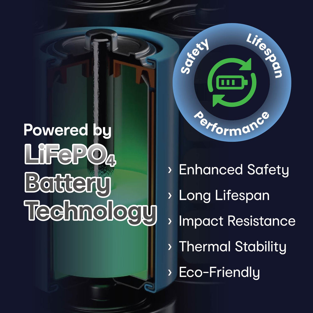 LiFePO₄ technology delivers up to 5000 charge cycles* far beyond standard lithium-ion. Thats years of daily use with less wear, fewer replacements, and power you can count on.