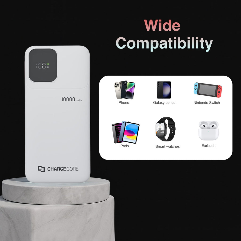 The ChargeCore SafeCharge Max 10000mAh Power Bank White uses advanced LiFePO₄ technology for enhanced safety, durability, and a longer lifespan, delivering reliable power for years.
