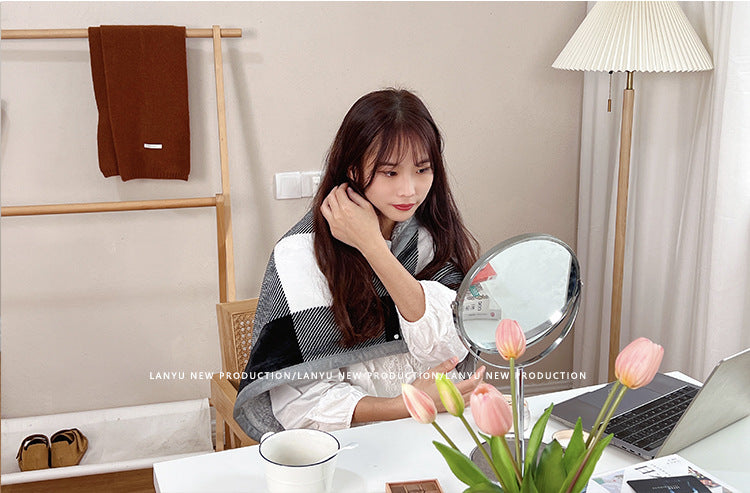 Double-Sided Geometric & Plush Throw Blanket - Warm 70x100cm Multi-Use Wrap(Black and white checkered/reverse gray)