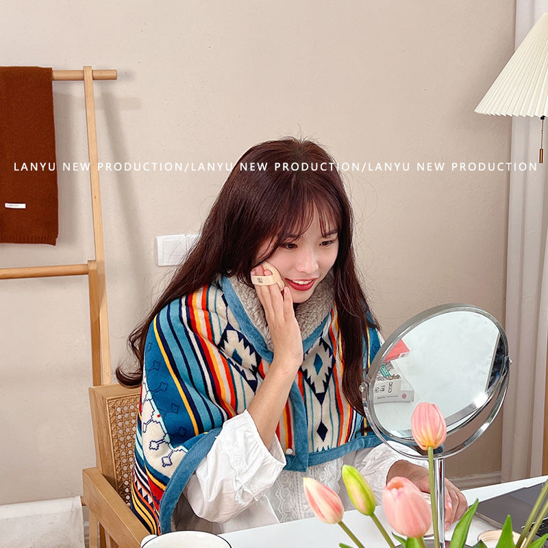 Double-Sided Geometric & Plush Throw Blanket - Warm 70x100cm Multi-Use Wrap