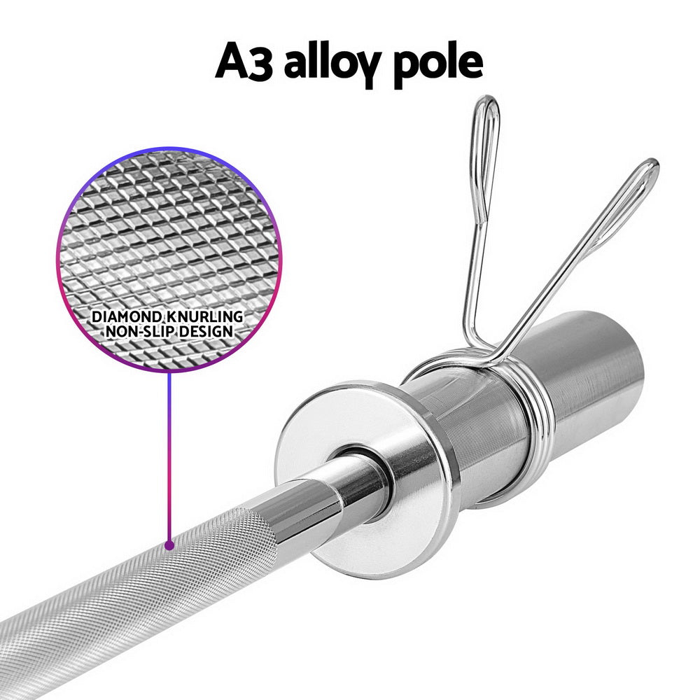 For durable and reliable fitness equipment for weightlifting, look no further than the Everfit Training Bar. Designed to fit most standard weight plates, the bar is useful for home gym junkies looking for a flexible weightlifting workout. The handles are made from heavy-duty cast iron material while the pole is made from A3 alloy steel, making it durable and long-lasting. The pole features diamond knurling for a non-slip grip throughout your entire workout. With a high weight capacity of 80kg, you'll be able to push your body to the limit. Simple to use and store, the Everfit Training Bar is an excellent addition to any home gym.