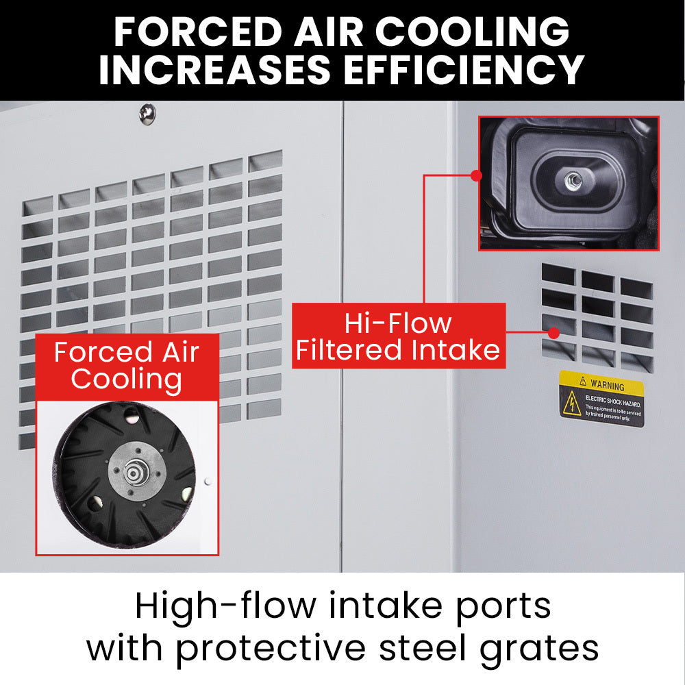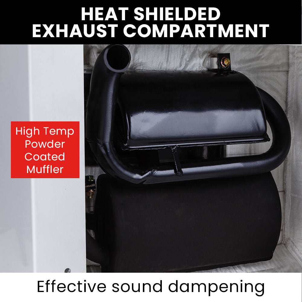Enclosure: 3mm High Tensile Powder Coated Steel, Sound Insulated Dampened