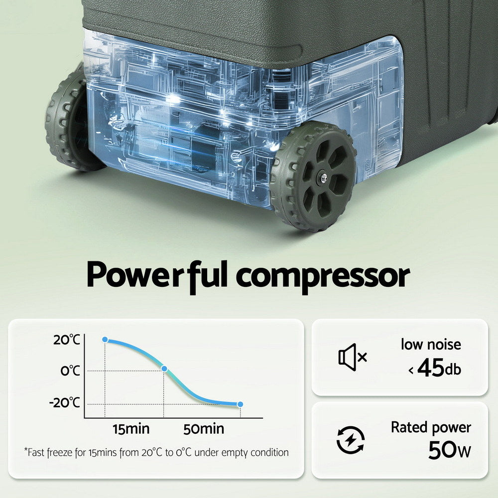 In the market for a portable fridge or freezer? Our exceptional Glacio Portable Fridge/Freezer is one cool device with extraordinary performance. Perfect for use on the road or indoors, the fridge easily plugs into any 12V, 24V or 240V power point for the powerful compressor to kick in its cooling prowess. A simple LCD with even simpler operational setting allows you to start the refrigeration process easily: just turn on the power, set the temperature, and the genuine compressor will do the rest. The compressor is very energy-efficient,offering ECO and MAX cooling modes about 1.32kWh for every 24 hours of use. When running on DC power, the battery has 3-stage charging protection that cuts off charging once the voltage setting is attained to ensure longer-lasting battery life. The fridge has plenty of space for all your food and drinks with removable divider that also serves as a cutting board, and you can adjust the temperature down to -20 ?. The heavy-duty exterior is designed to handle all the knocks and bumps of a road trip and comes with 4 cup holders on the top lid, plus easy carry handles,pull rod and off-road wheels for portability. With so much going for it, our Glacio Portable Fridge/Freezer is surely your choice of a reliable cooler for all your outdoor (or indoor) escapades.