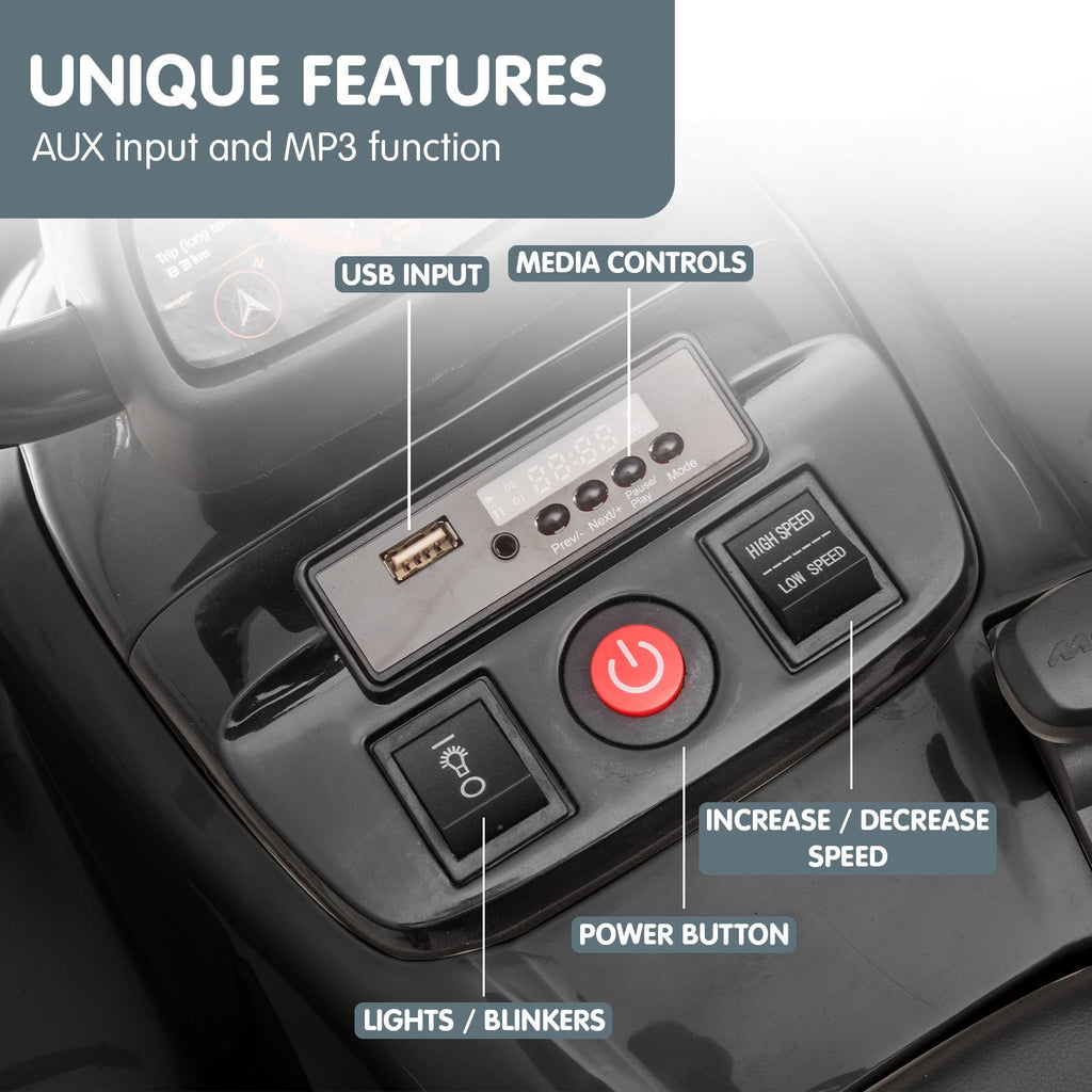 With this toy car's built-in radio and MP3 function, your little one will be cruising through the neighborhood while listening to their favorite tunes. It has switchable LED lights for safe nighttime driving.