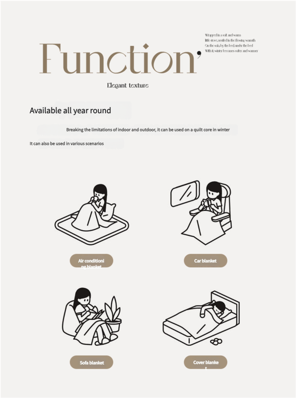 This throw blanket combines elegance with functionality, offering a lightweight yet warm experience that's ideal for year-round use.While the durable fabric ensures long-lasting use. Whether you're relaxing at home or seeking a thoughtful gift, this blanket is a must-have for ultimate comfort.