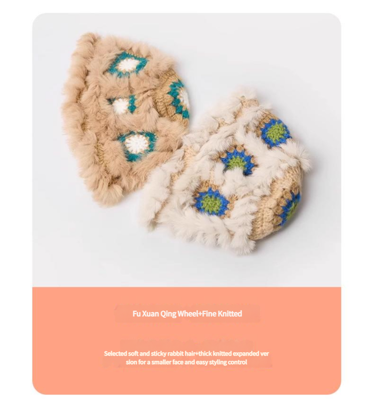 Plush Floral Bucket Hat,Warm Crocheted Winter Hat in Khaki-Hat circumference: 56-60cm