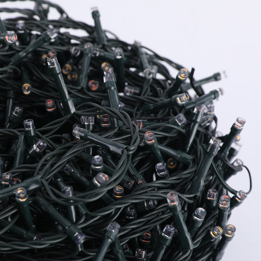 Outdoor LED Fairy Light 1200 blue and white LEDs, Including 31V BS Plug Transformer, IP44 8 function memory controller, 60m approx. light length (green PVC), indoor/outdoor use.