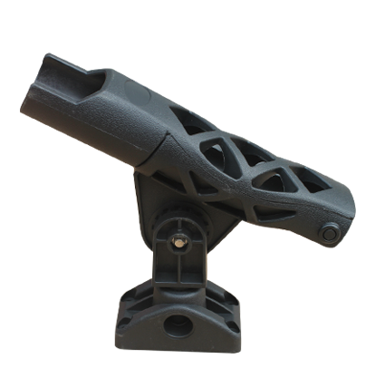 The rod holder can be swiveled 360 degrees and can me tilled up and down. When not using you can easily remove the rod holder from the base and store in your kayak.