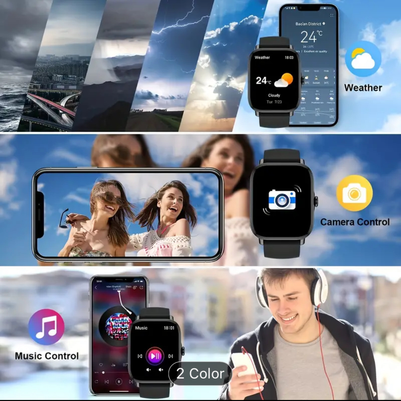 Smart Watch 44mm Bluetooth call Screen True Multidial Blood Oxygen Game Sports Mode Pro FOR IOS and Android Black with 2 straps
