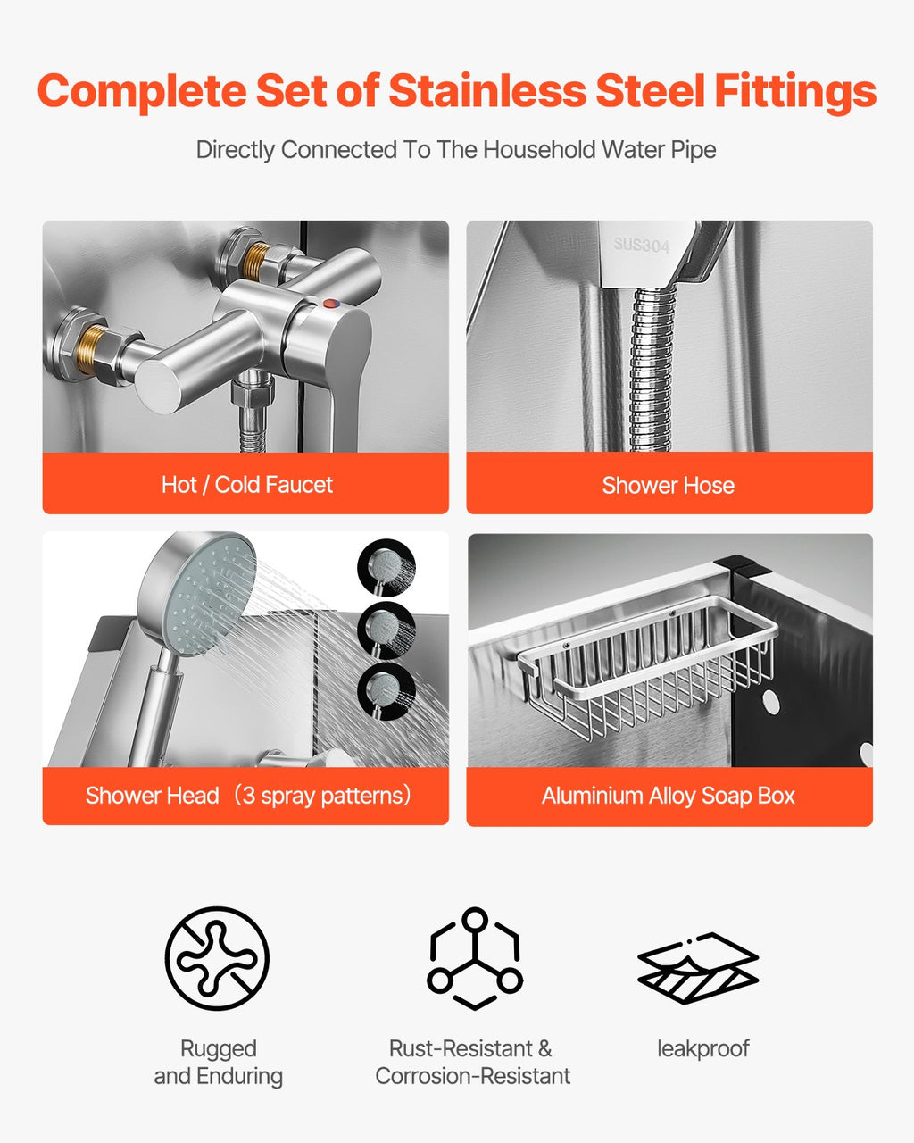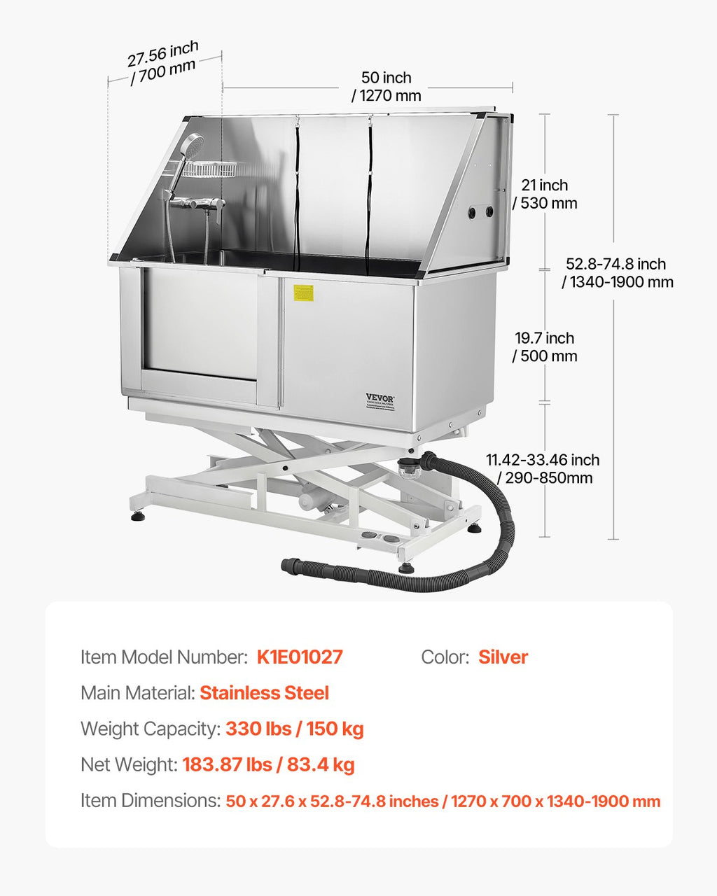 The rounded seamless welding provides better sealing and makes cleaning more convenient. The dog grooming tub is featuring hot and cold faucets, a dual-control showerhead, and a soap holder, this design simplifies and streamlines the bathing process. The PE water filter board provides a non-slip draining surface, and the included duckbill buckle stops pets from accidentally triggering the door during bath time, keeping them securely inside