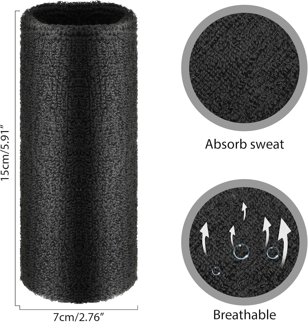 Wrist Sweatbands Elastic Sport Wristbands 6 Inch Absorbent Terry Cloth Armbands Long Cotton Athletic Wrist Bands for Working Out Football Basketball Tennis Gym Costumes Cosplay